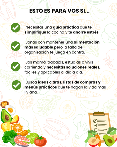 A mujeres (y también hombres) que quieren organizarse mejor en la cocina, ahorrar tiempo y mantener una alimentación más saludable, aunque tengan poco tiempo libre.