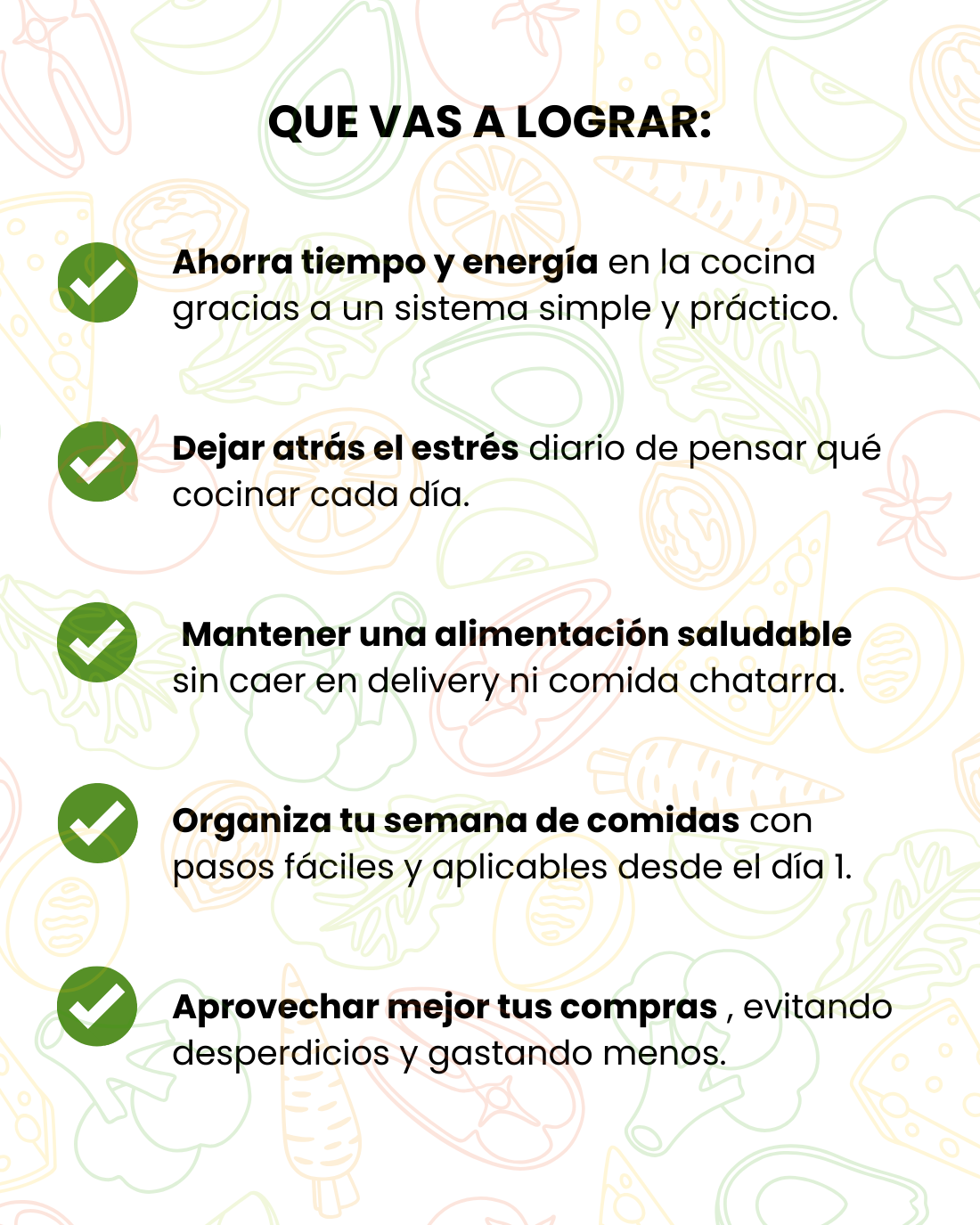 Desde la primera semana ya vas a notar cambios: menos estrés, más orden y comidas más saludables listas sin tanto esfuerzo.
