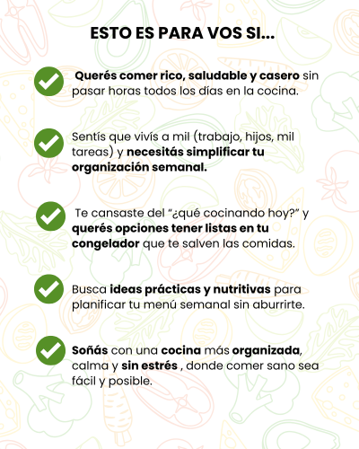Desde la primera semana ya vas a notar cambios: menos estrés, más orden y comidas más saludables listas sin tanto esfuerzo.