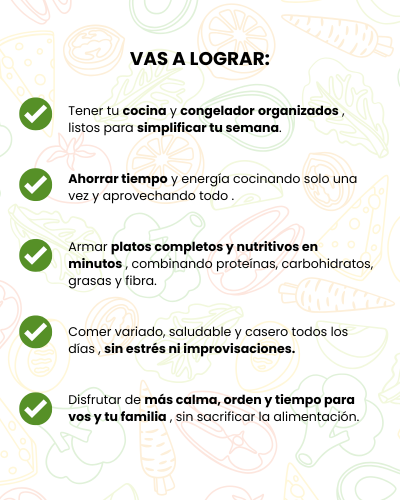 Desde la primera semana ya vas a notar cambios: menos estrés, más orden y comidas más saludables listas sin tanto esfuerzo.